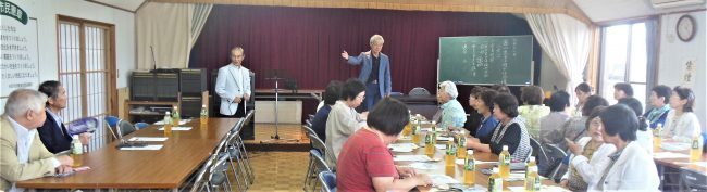 滑川更女さんのご見学。いつものように現地をご見学。鴉根区民館に移り、西まさるの「亀三郎と救済所」の講演である。