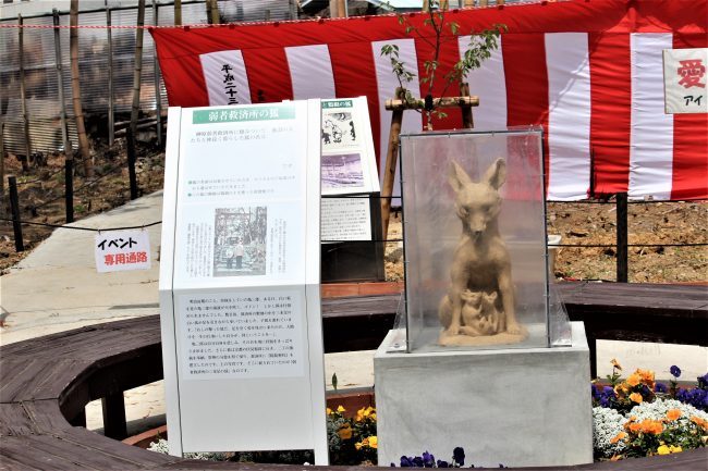 令和3年4月24日(土)、ようやく狐の陶像がお披露目できた。除幕式開催。