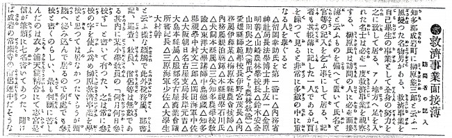 その内の1つ、大正元年10月の『尾三新聞』に「救済事業面接簿」と見出しされた記事に、救済所を訪問した人の名が記されている。