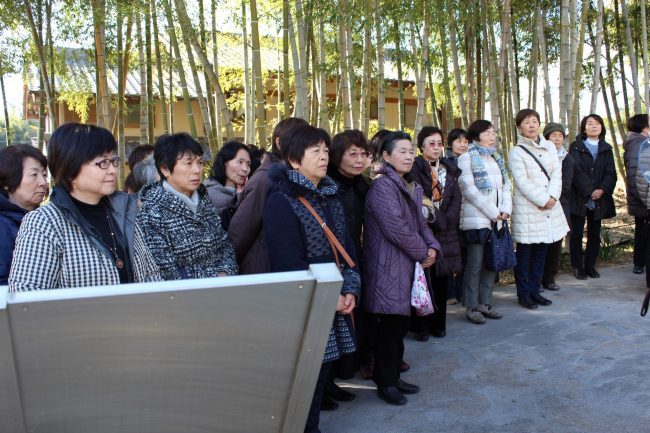 当日、半田市はこの年一番の寒さ。朝の気温は3度ほどだった。「お~さぶっ」と茅野市のみなさんを待った。きょうは半田市更生保護女性会の菊岡小代子事務局長も来てくださっている。吹きさらしの史跡公園は寒い。